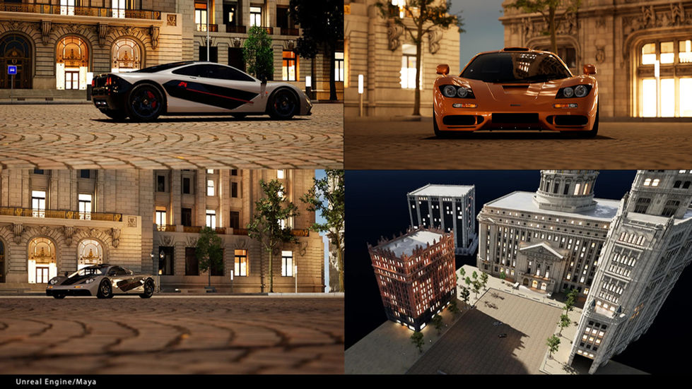 The Buildings depicted here are designed and sculpted in Maya And the rendering is done in UE5 To visualize the environments. The car renderings are visualizations done for pre existing car models. The models were sourced from 3d model websites.